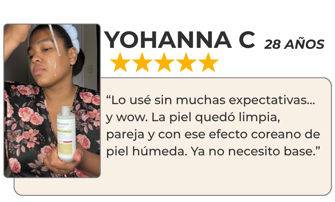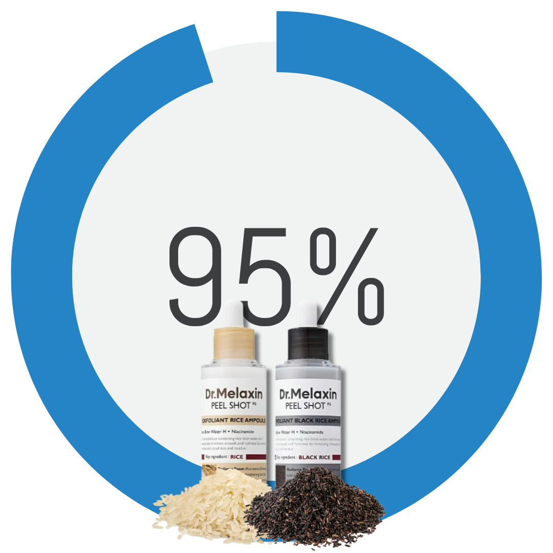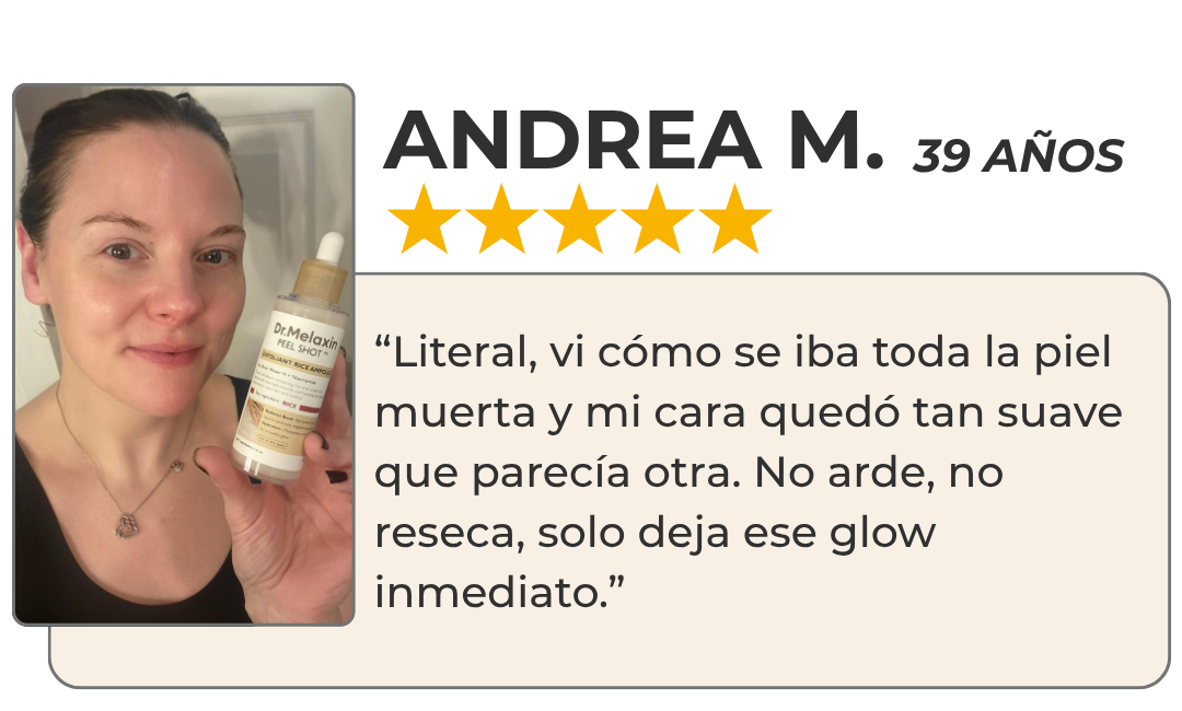 Los estudios clínicos muestran que el 95 % de las usuarias del Dr. Melaxin Peel Shot notaron una piel más lisa, luminosa y uniforme desde el primer uso.