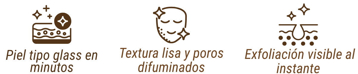 Rico en vitaminas y aminoácidos, elimina suavemente la opacidad, hidrata en profundidad y deja el rostro con un brillo natural y una textura tan suave que se siente renovada desde el primer uso.