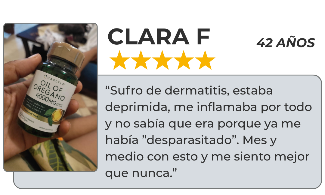 Nuestra fórmula aporta 4000 mg por porción con 40 mg de carvacrol natural, la dosis usada en estudios contra cándida, E. coli, Salmonella y parásitos intestinales. No es un suplemento suave: es un arma ancestral validada por la ciencia moderna.