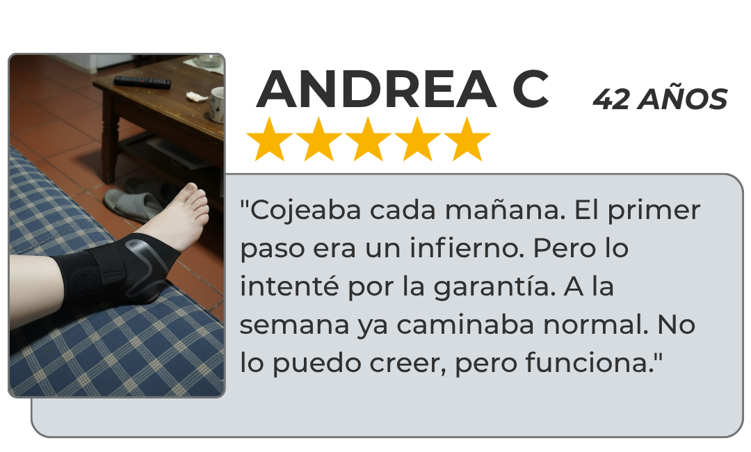 Brace Up ofrece exactamente lo que tu pie necesita: soporte del arco, reducción de inflamación y activación de la circulación, todo en una manga que puedes usar 24/7 mientras tu cuerpo sana naturalmente.