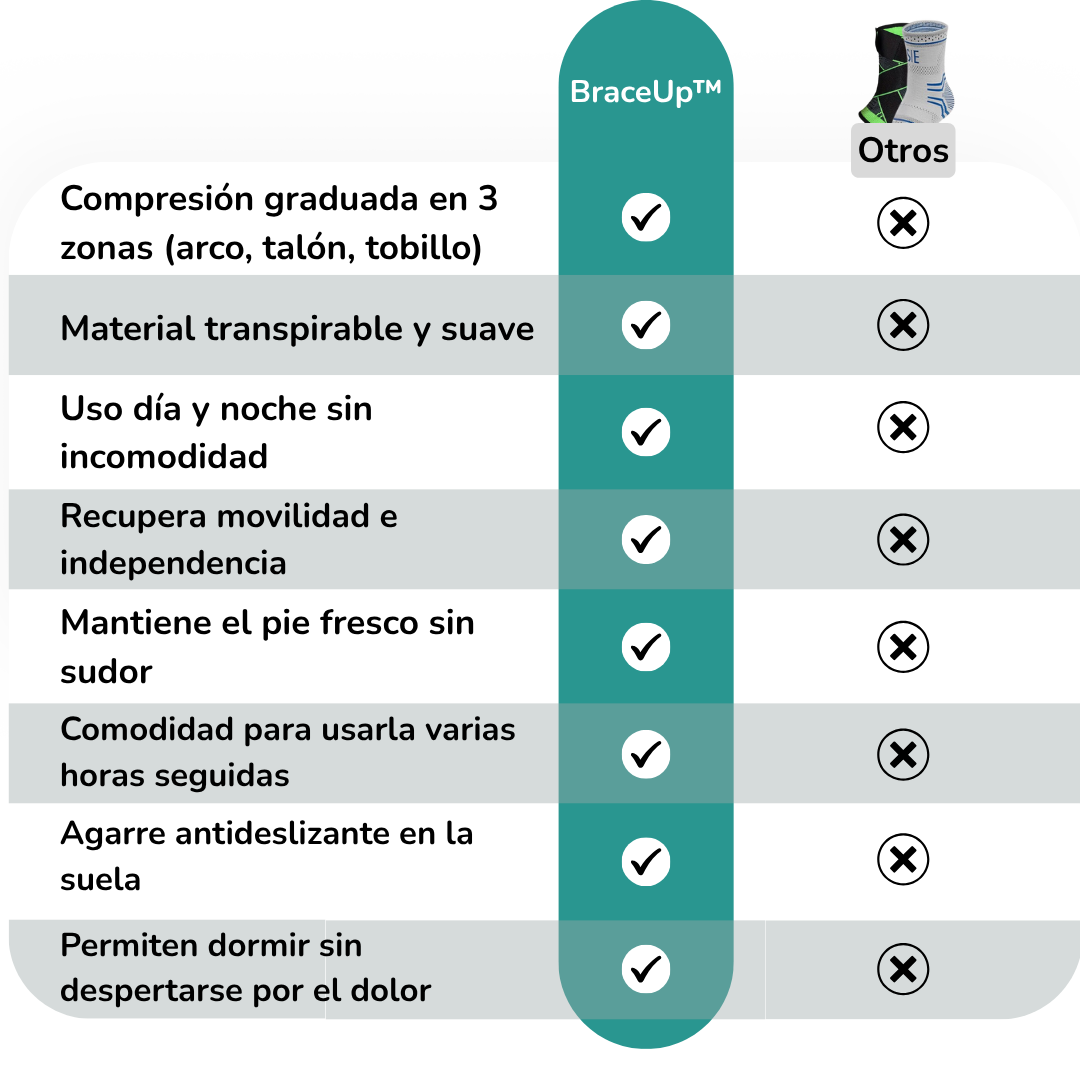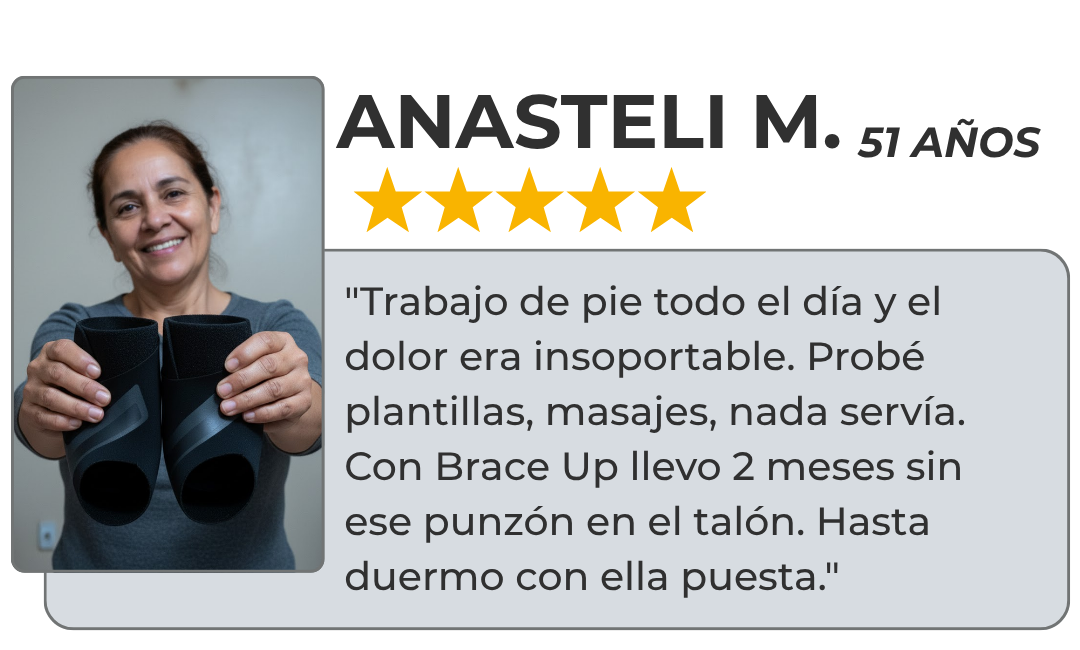 Ese primer paso que te hace agarrarte de la pared. El dolor que convierte cada día en una lucha. Las plantillas y cremas que nunca funcionaron.Ya probaste todo. Ahora prueba lo que realmente funciona. Brace Up es la compresión focalizada que sostiene tu arco, reduce la inflamación y te devuelve la vida que el dolor te quitó. No más miedo al despertar. Solo alivio real.
